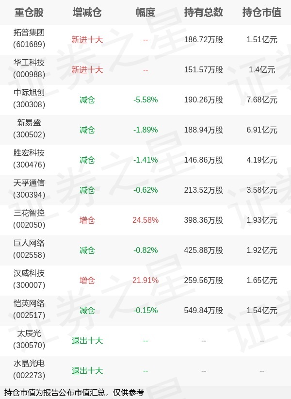本站消息,10月28日华商基金旗下胡中原管理的华商润丰灵活配置混合型基金公布三季报宇轩配资,近1年净值增长率92.75%。与上一季度相比,该基金前十大重仓股新增拓普集团,华工科技;其中中际旭创持仓占比5.61%,为该基金第一大重仓股;太辰光,水晶光电等退出前十大重仓股;详细数据如下:
