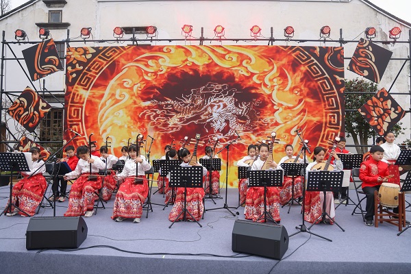 近年来,泗泾镇始终深耕十锦细锣鼓的活态传承与创新推广,走出了一条“戏曲+非遗+跨界”的特色发展之路。一方面,让非遗走近群众,通过常态化的展演展览,让市民游客在身边感受非遗之美;另一方面,与上海音乐学院民乐系深度合作,从新曲创编、人才培养到展演联动,全方位为这项古老艺术注入时代活力。从清代“阳春堂”吹打班的悠悠古韵,到如今古镇舞台上新人新曲的精彩演绎,跨越三百年时光的泗泾十锦细锣鼓,始终在江南水乡的塔影桥畔久久回响,不仅实现了技艺的代代相传,更成为守护一方水土的文化纽带。